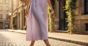 - Gładka sukienka, prosty dekolt: Odważ się na duży, wyrazisty naszyjnik lub komplet biżuterii.